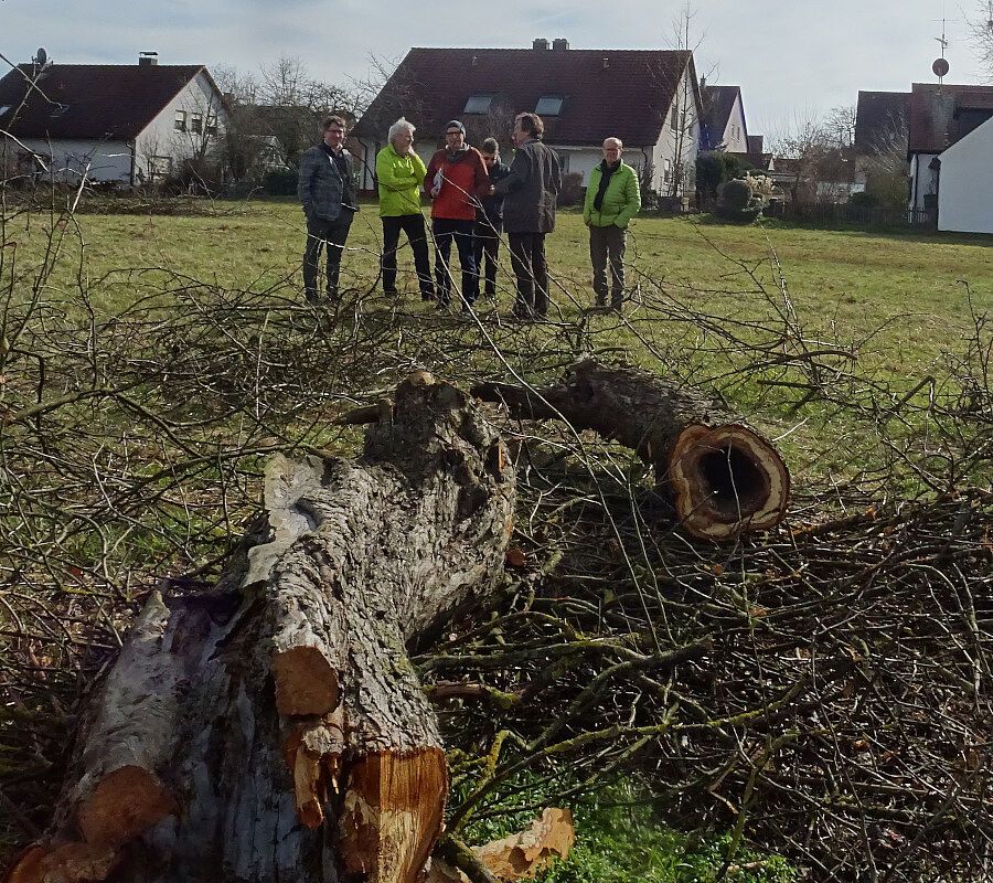 Mit dem Bebauungsplan Oberschöllenbach Nr. 11 "Westlich der Oberschöllenbacher Hauptstraße" sollen im Außenbereich, unmittelbar angrenzend an das Vogelschutzgebiet Nürnberger Reichswald, ca. 3.3 ha landwirtschaftlich genutzte Flächen, teilweise mit älterem Obstbaumbestand, geopfert werden. Wie das nebenstehende Foto beweist, wurden die Obstbäume bereits im Vorgriff ohne Satzungsbeschluss abgeholzt.