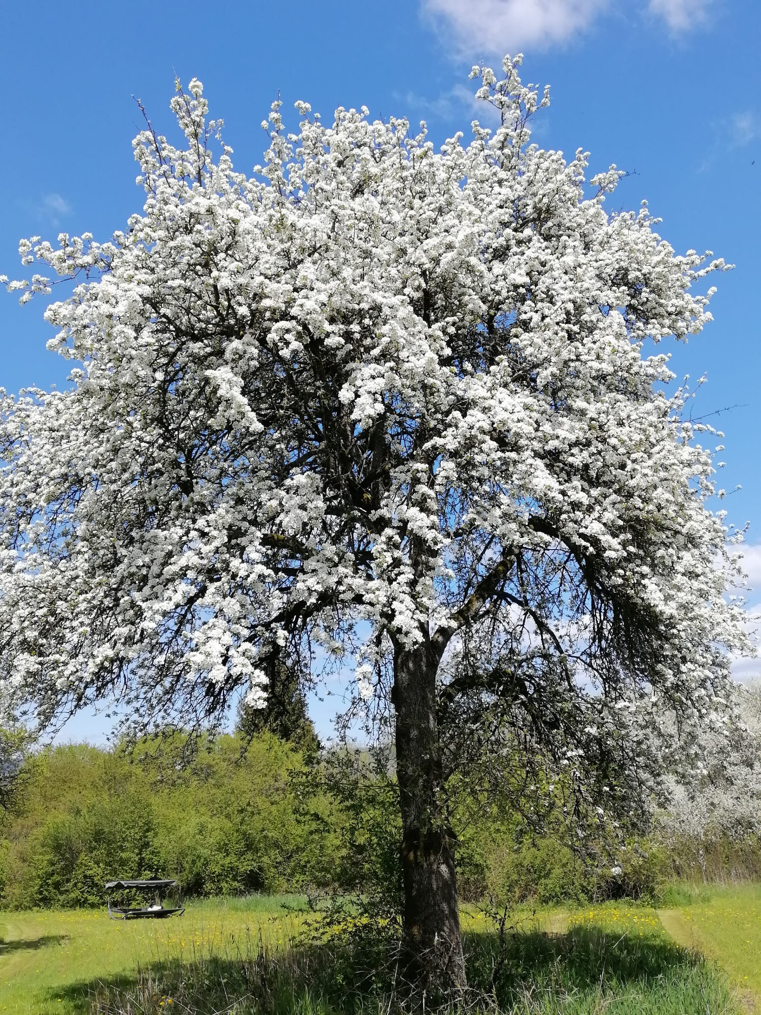 Im Nordosten ist eine Besonderheit erwähnenswert. Hier hat der Großvater der heutigen Besitzerin ein Gartengrundstück von einem halben Hektar Größe angelegt. Im Zentrum steht ein mächtiger, etwa 100 Jahre alter Birnbaum.